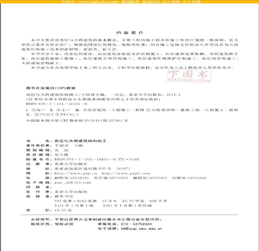 《高层与大跨建筑结构施工》王绍君.高清PDF文字版.pdf 免费下载