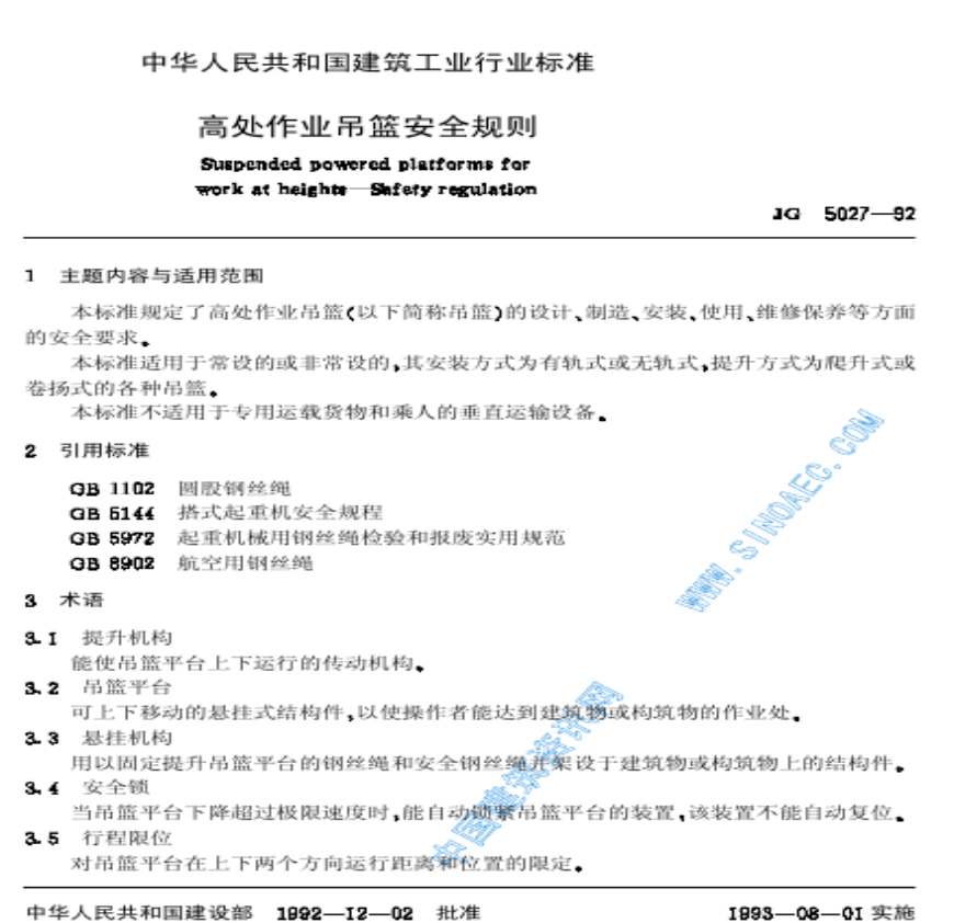 高处作业吊篮安全规则jg5027-92.pdf 免费下载