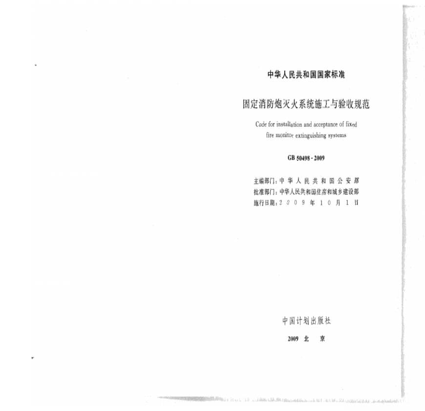 固定消防炮灭火系统施工与验收规范GB50498--2009.pdf 免费下载