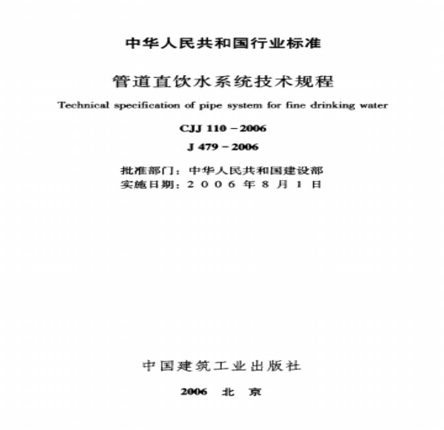 管道直饮水系统技术规程【CJJ110-2006】资料下载,喜欢的朋友可以下载收藏!