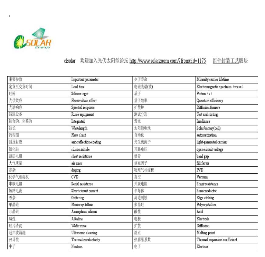 光伏专业英语词汇资料下载,喜欢的朋友可以下载收藏!