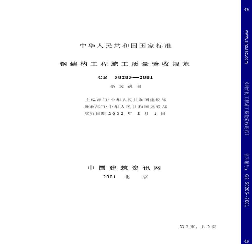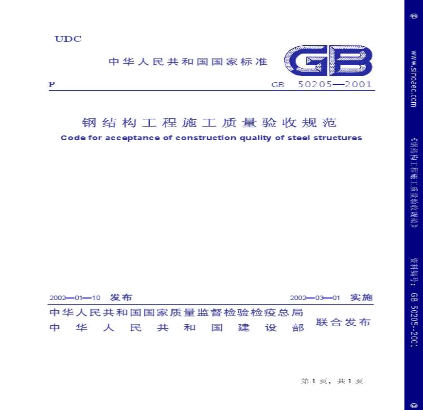 GB50205-2001 钢结构工程施工质量验收规范(东锦内