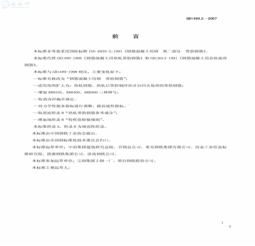 GB1499.1 2007 钢筋溷凝土用钢 2 热轧带肋钢筋
