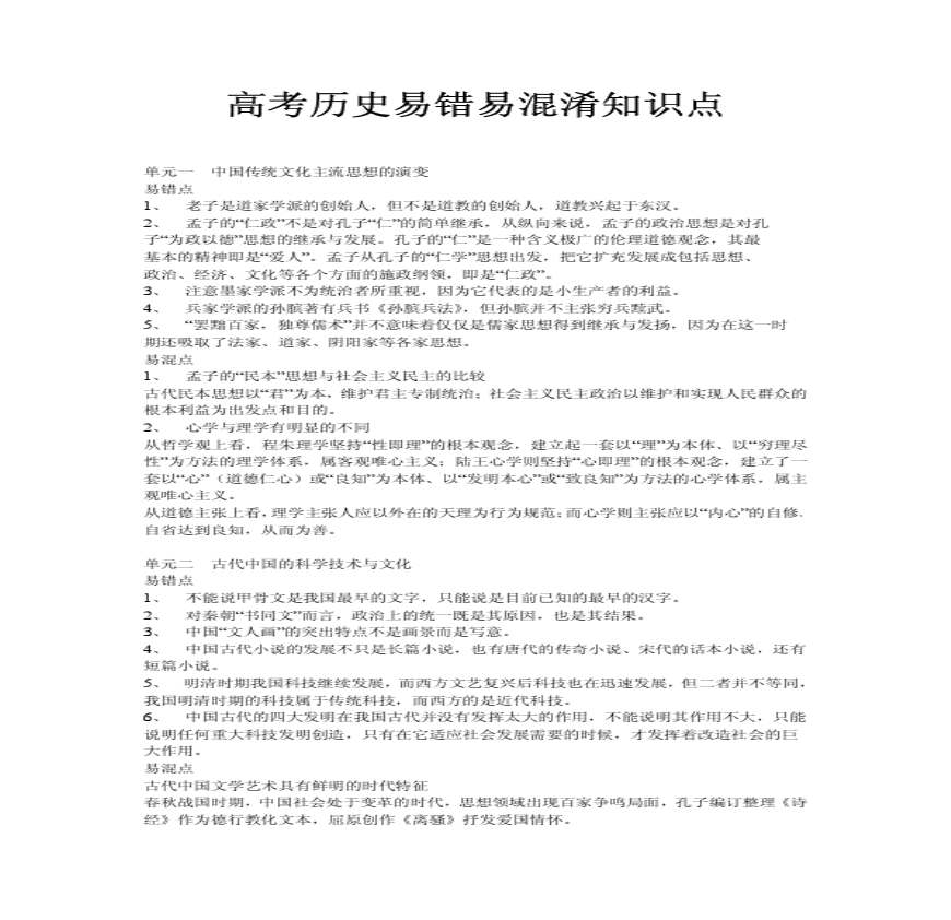 高考历史易错易溷淆知识点资料下载,喜欢的朋友可以下载收藏!
