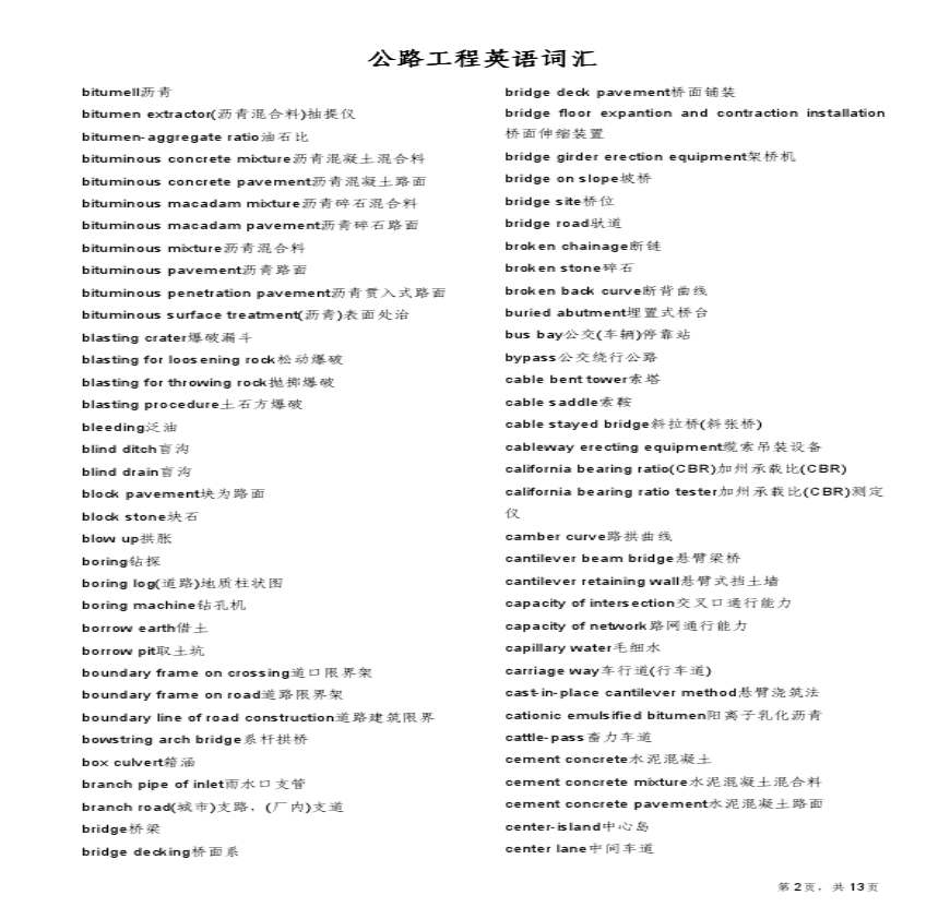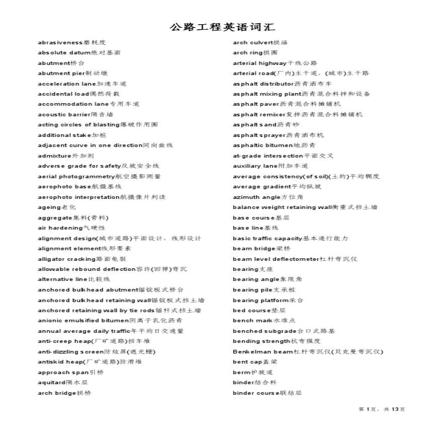 公路工程英语词汇第 页,共 页 br磨耗度 b 绝对基面 b桥台 b r制动墩