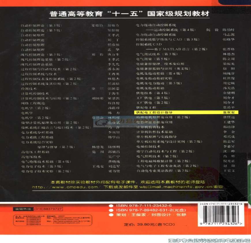 PDF 上传日期: ::| 关注我们 官方公共微信 道 学习资料页 [GrIr]书名普通高等教育十一五国家级规划教材配套教材供配电工程设计指导作者页数日期SS号DX号封面书名版权前言目录第一章供配