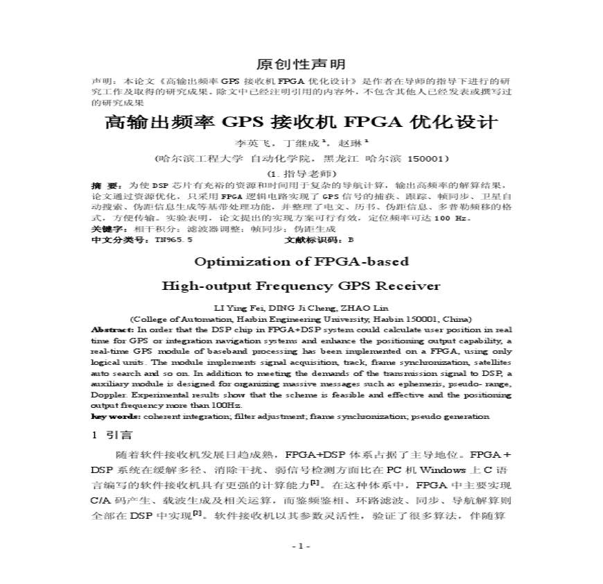 高输出频率GPS接收机FPGA优化设计.pdf 免费下载