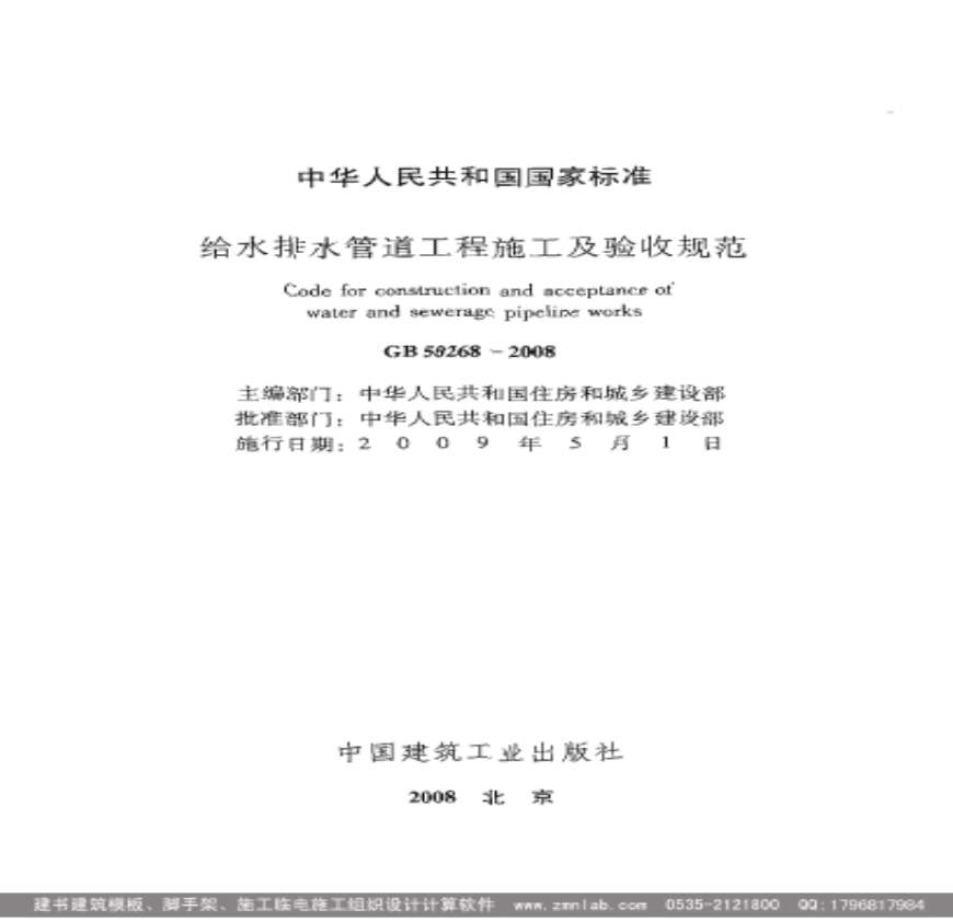 《给水排水管道工程施工及验收规范》GB50268-2008资料下载,喜欢的朋友可以下载收藏!