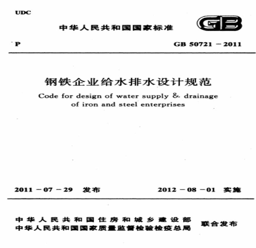 > 钢铁企业给水排水设计规范 GB50721-2011