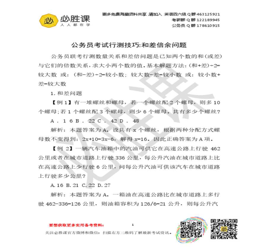 公务员考试行测技巧 和差倍余问题.pdf 免费下载