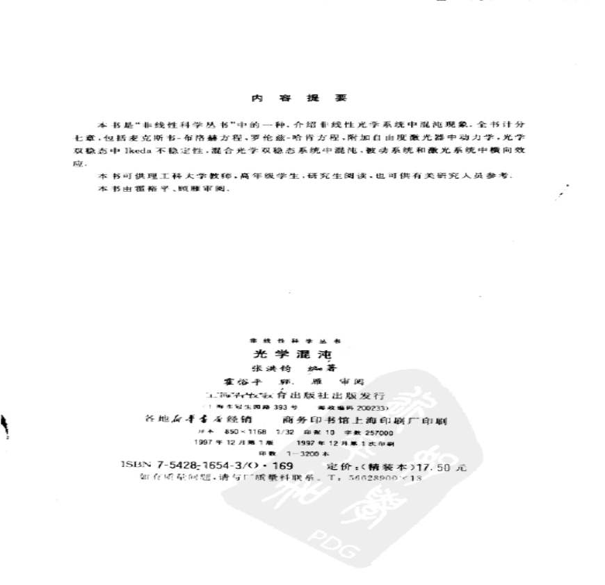 > 《光学溷沌》(作者)张洪钧 上海科技教育 1997年12月第1版