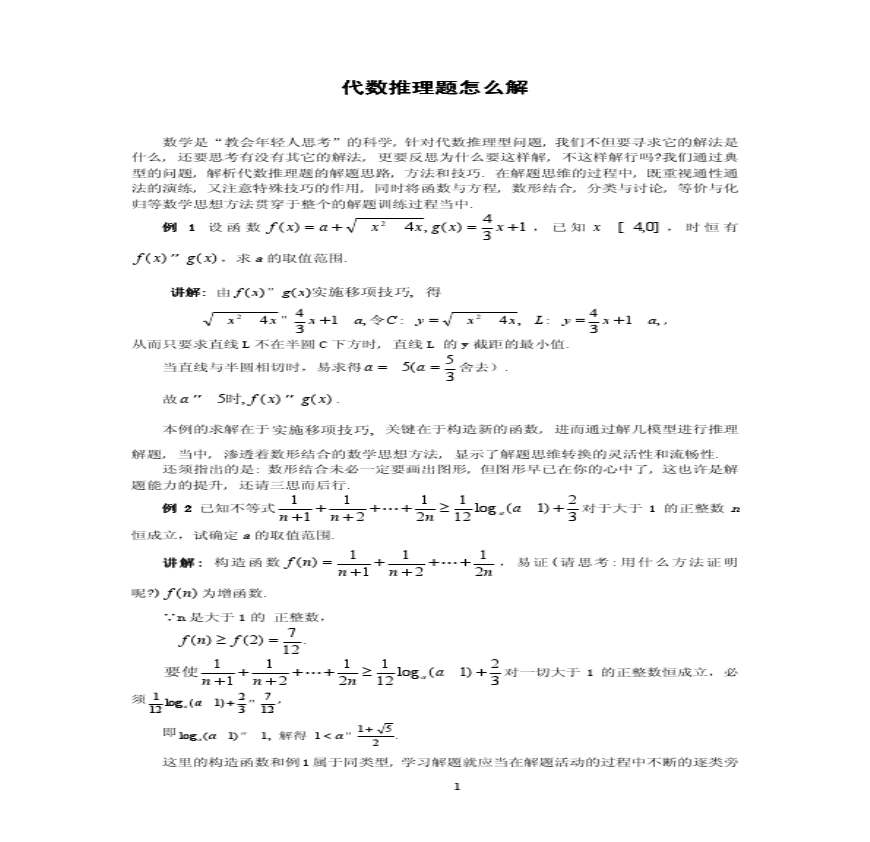 高中代数推理题怎么解资料下载,喜欢的朋友可以下载收藏!