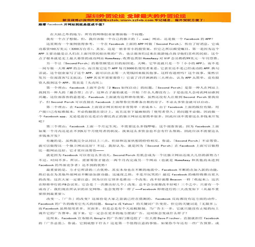 > 跟着facebook开网站到底是值或不值
