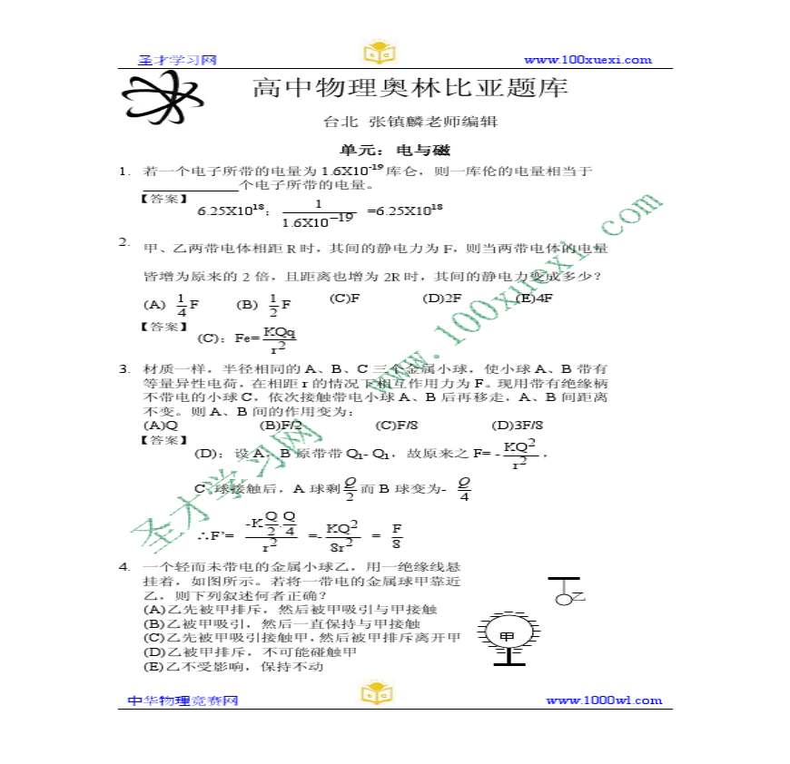高中物理奥林匹克题库(电与磁).pdf 免费下载