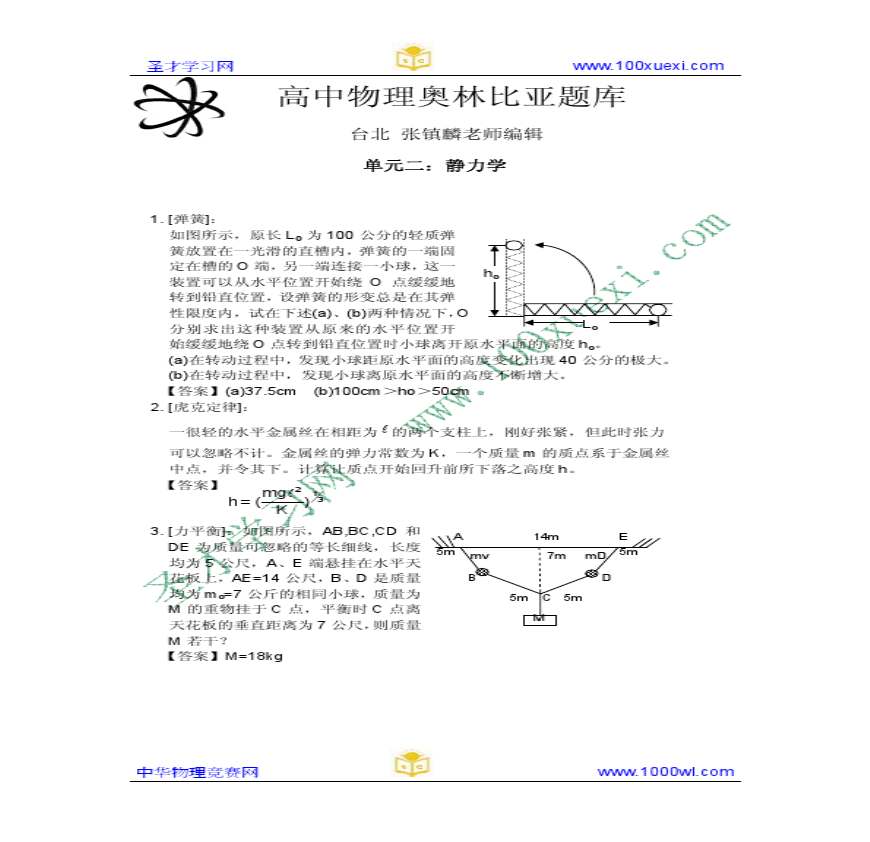 高中物理奥林匹克题库(静力学)资料下载,喜欢的朋友可以下载收藏!