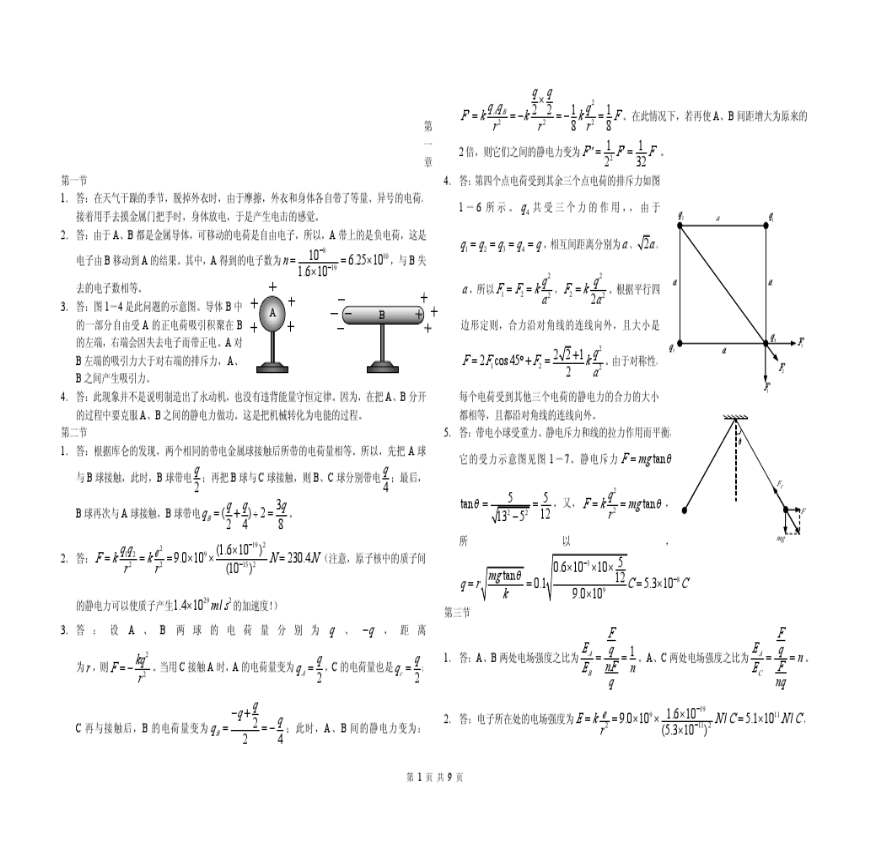 高中物理选修3—1课后习题答案资料下载,喜欢的朋友可以下载收藏!