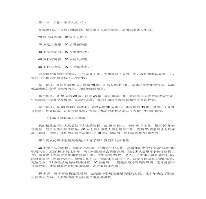 【简介_书评_文档下载】 职业规划,你有了吗?(天涯原创,纸书名已)_ 次阅读&b条回帖&b发贴时间:年月日回到上来,仅仅会跳槽显然是不够的,我联系实际以及自己初具雏形的职业发展理论,开始了《规划你的职业人生》这个职业发展帖职场天地职业交流“,聚会即在弹指间”_ 读者和群友(QQ群:)年末聚会 职业自由和财务自由的探讨