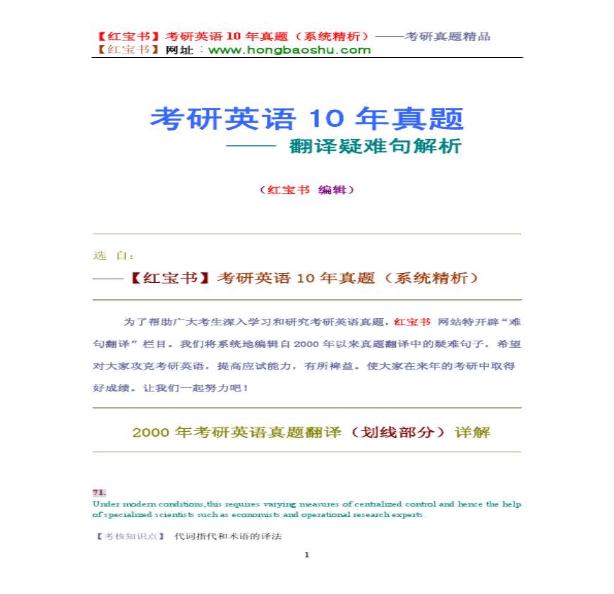 【红宝书】考研英语10年真题——翻译难句系统解析汇总(很经典).pdf 免费下载