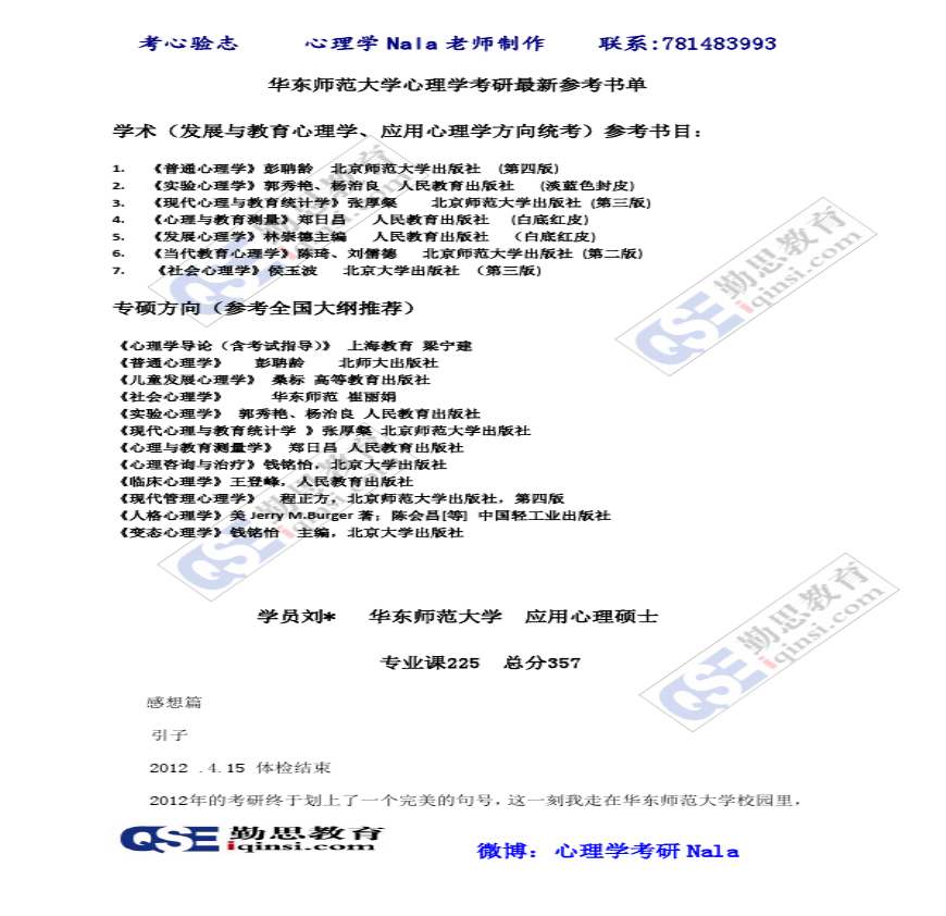华东心理学考研最新参考书目.pdf 免费下载