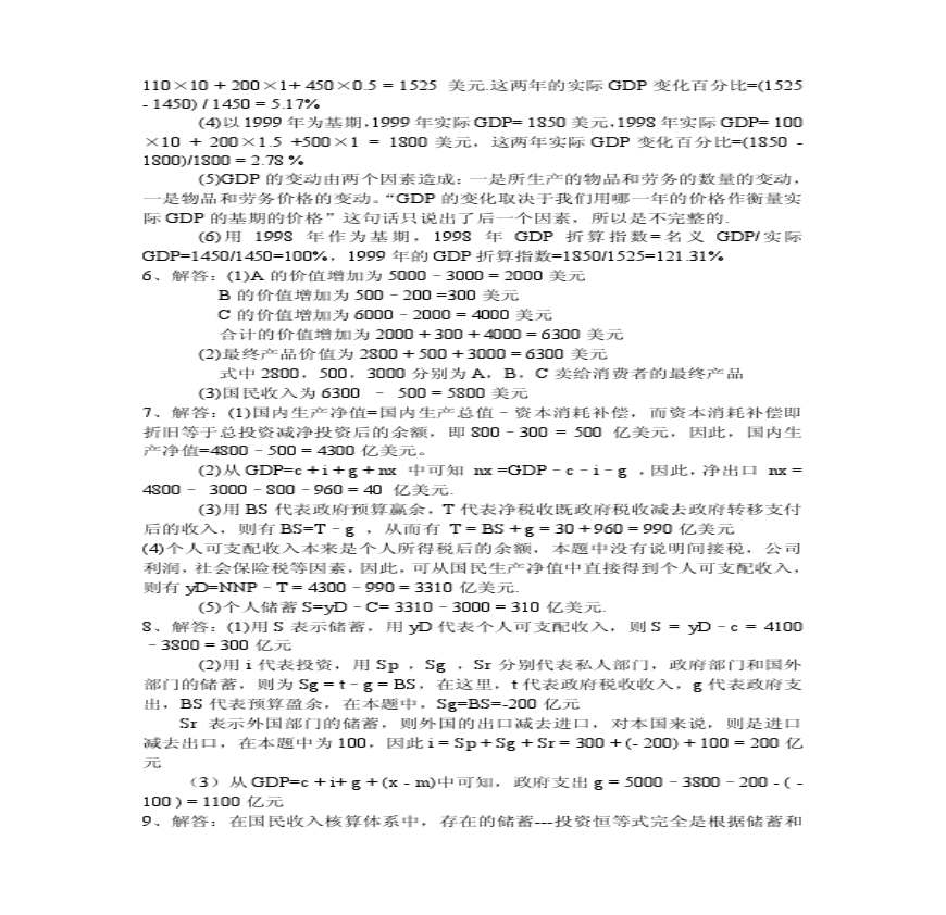 > 宏观经济学课后习题答案(人大高鸿业版)