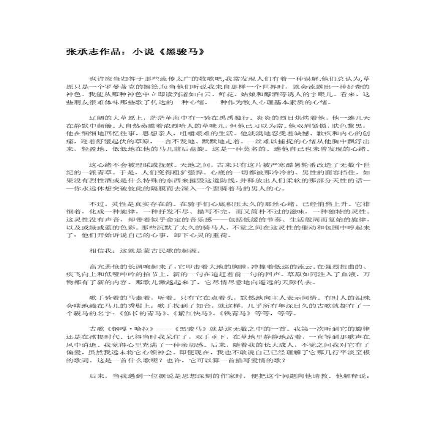 黑骏马·张承志资料下载,喜欢的朋友可以下载收藏!