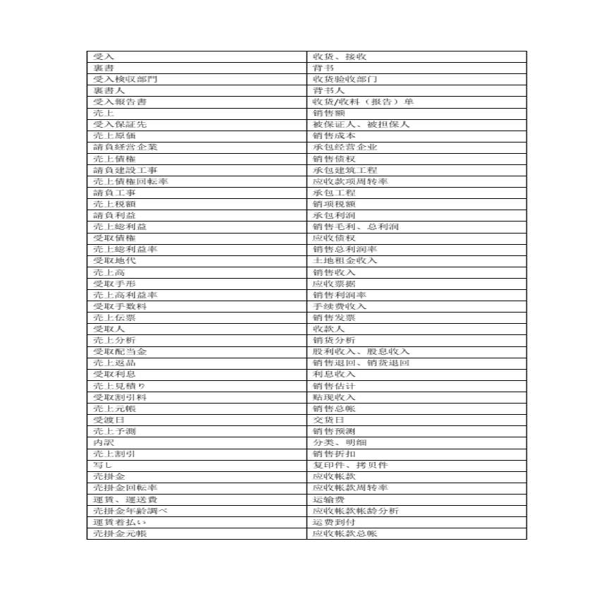 用语用语 一、资产类资产 (し さ ん )现金现金 (げん き ん )银行存款银行预金 (ぎ ん こ う よ き ん )其他货币资金 そ の他货币资金用语专业词汇 财务专业用语 元 。