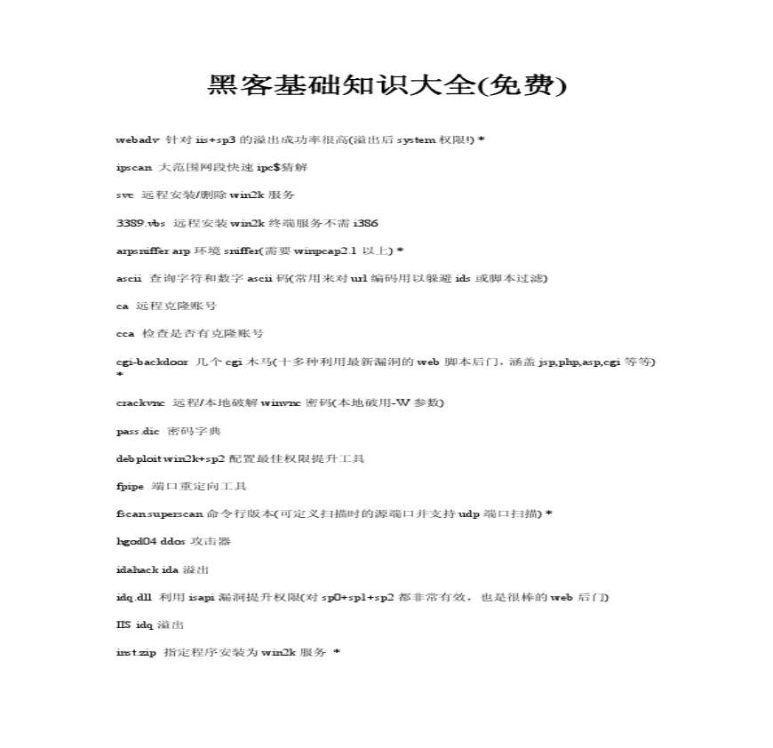 > 黑客基础知识大全_免费_
