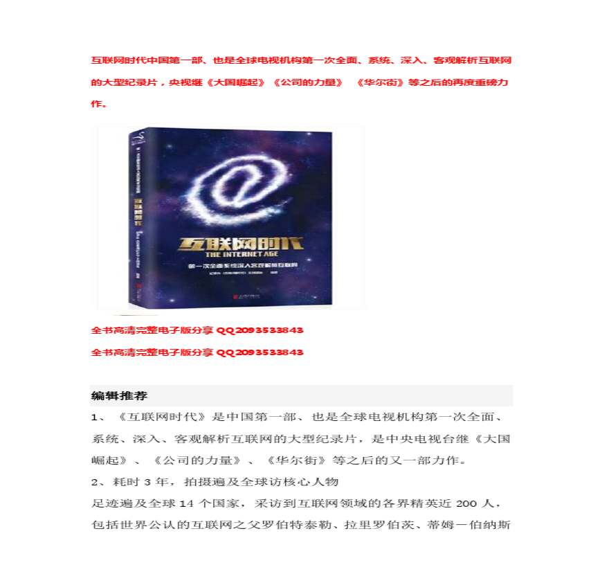 互联网时代PDF和TXT高清完整电子版可下载资料下载,喜欢的朋友可以下载收藏!