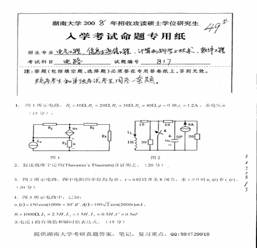 湖南2008考研电路资料下载,喜欢的朋友可以下载收藏!