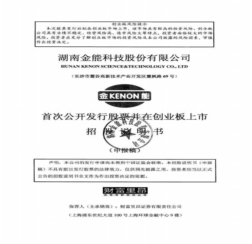 湖南金能科技股份有限公司创业板首发招股说明书.pdf 免费下载