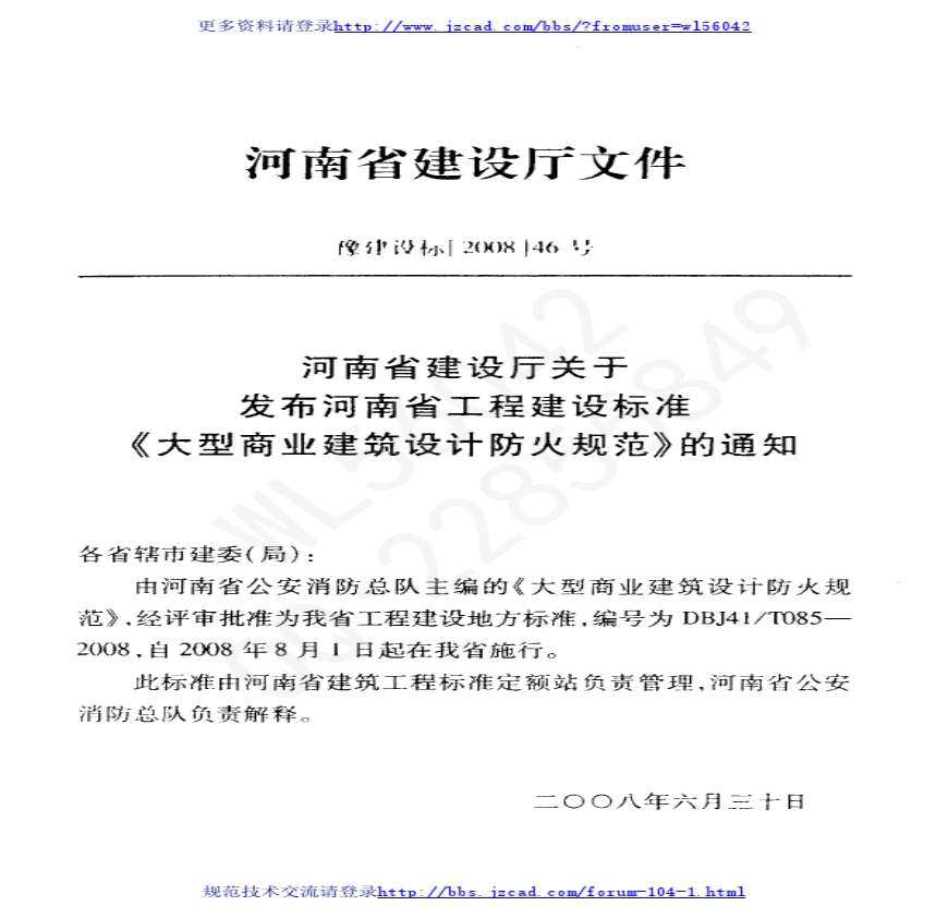 河南省BJ41-T085-2008-大型商业建筑设计防火规范资料下载,喜欢的朋友可以下载收藏!