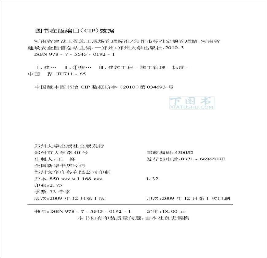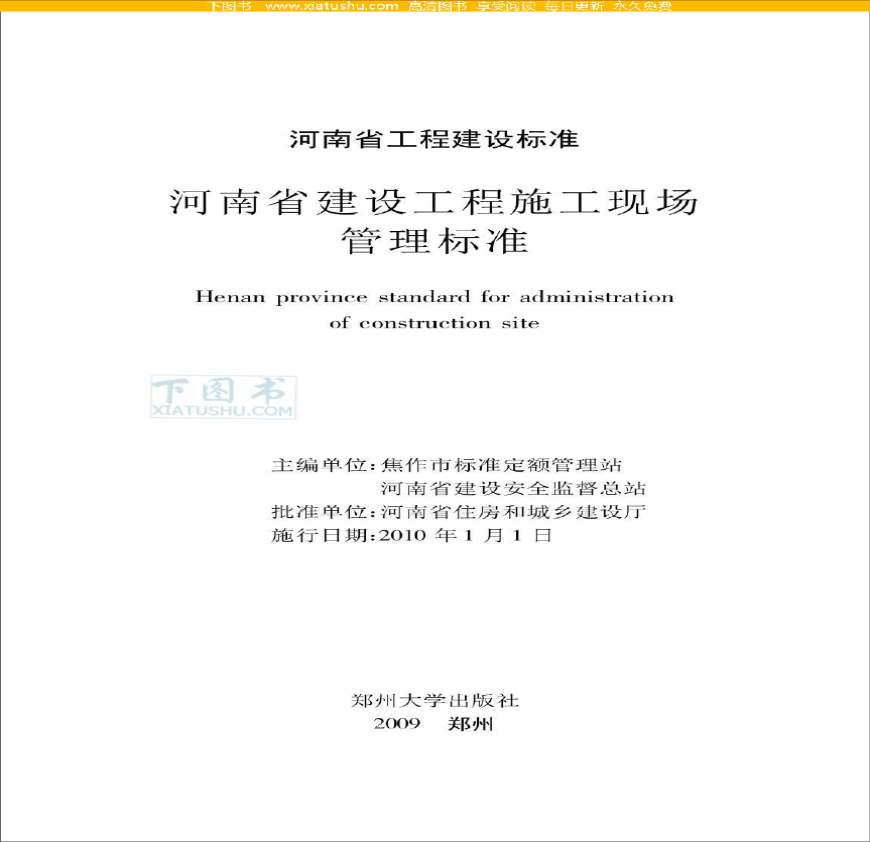 《河南省建设工程施工现场管理标准》焦作市标准定额管理站,河南省....高清PDF文字版资料下载,喜欢的朋友可以下载收藏!