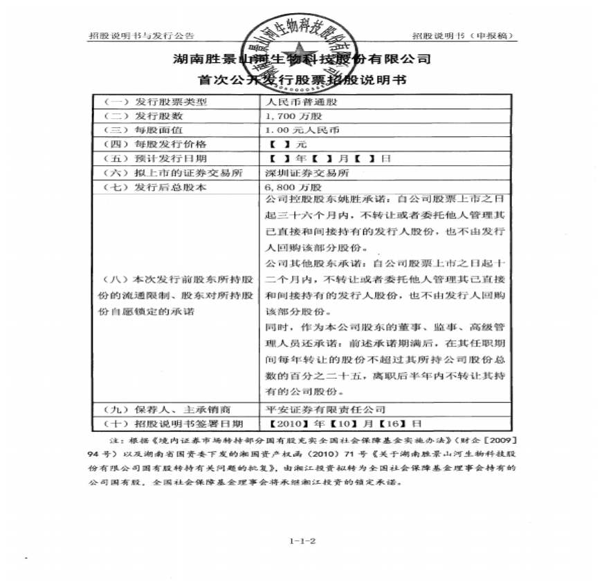 湖南胜景山河生物科技股份有限公司首发招股说明书资料下载,喜欢的朋友可以下载收藏!