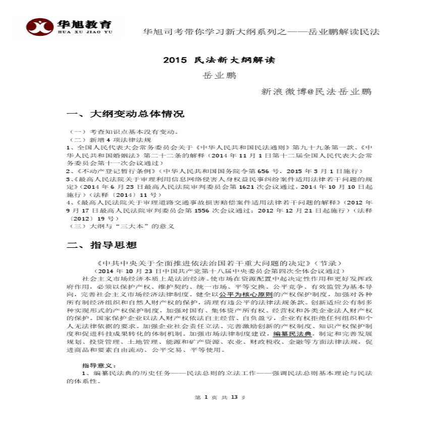 华旭民法大纲解读-岳业鹏.pdf 免费下载