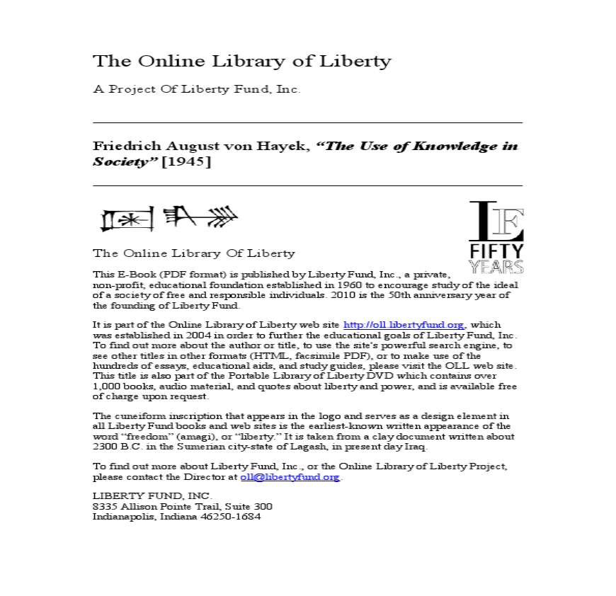 哈耶克《知识在社会中的运用》(英文版).pdf 免费下载