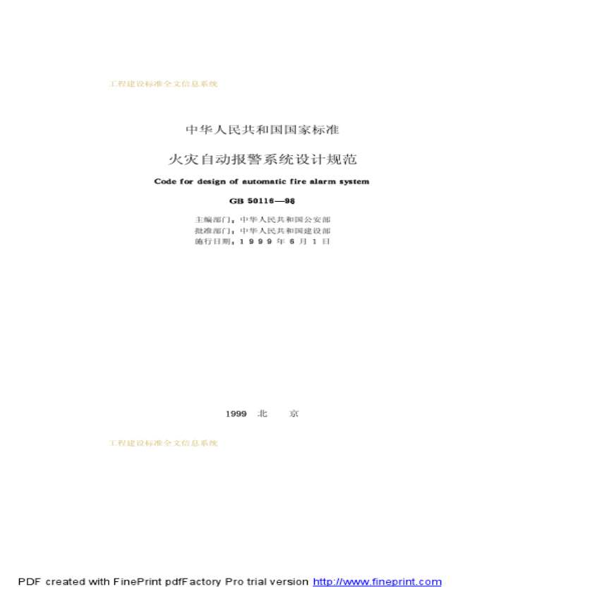 火灾自动报警系统设计规范GB50116-98.pdf 免费下载