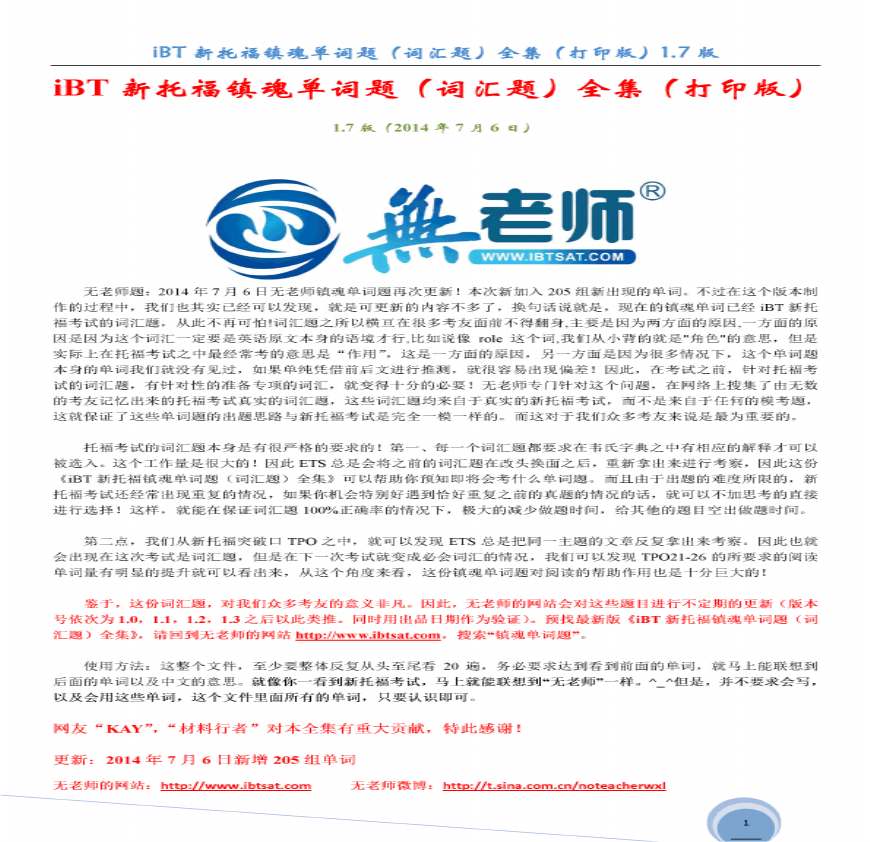 iBT新托福镇魂单词题(词汇题)1.7版资料下载,喜欢的朋友可以下载收藏!