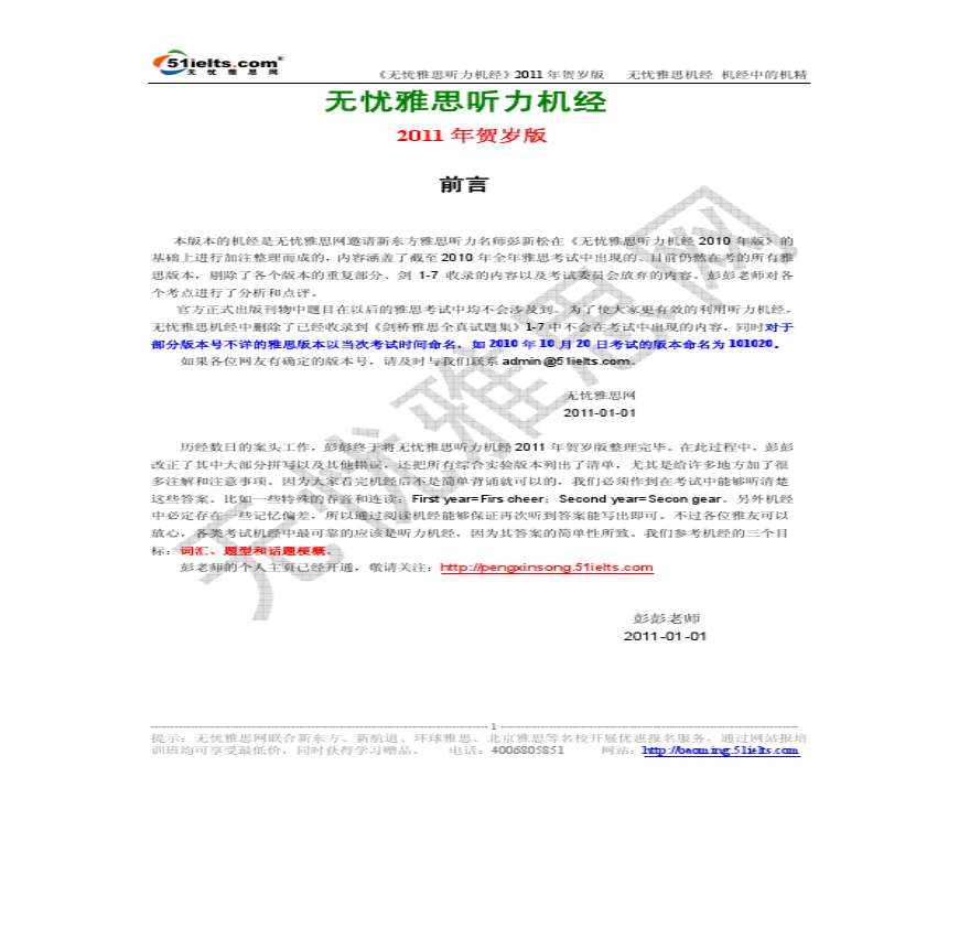 惊爆!!!无忧雅思听力机经2011年贺岁版.pdf 免费下载