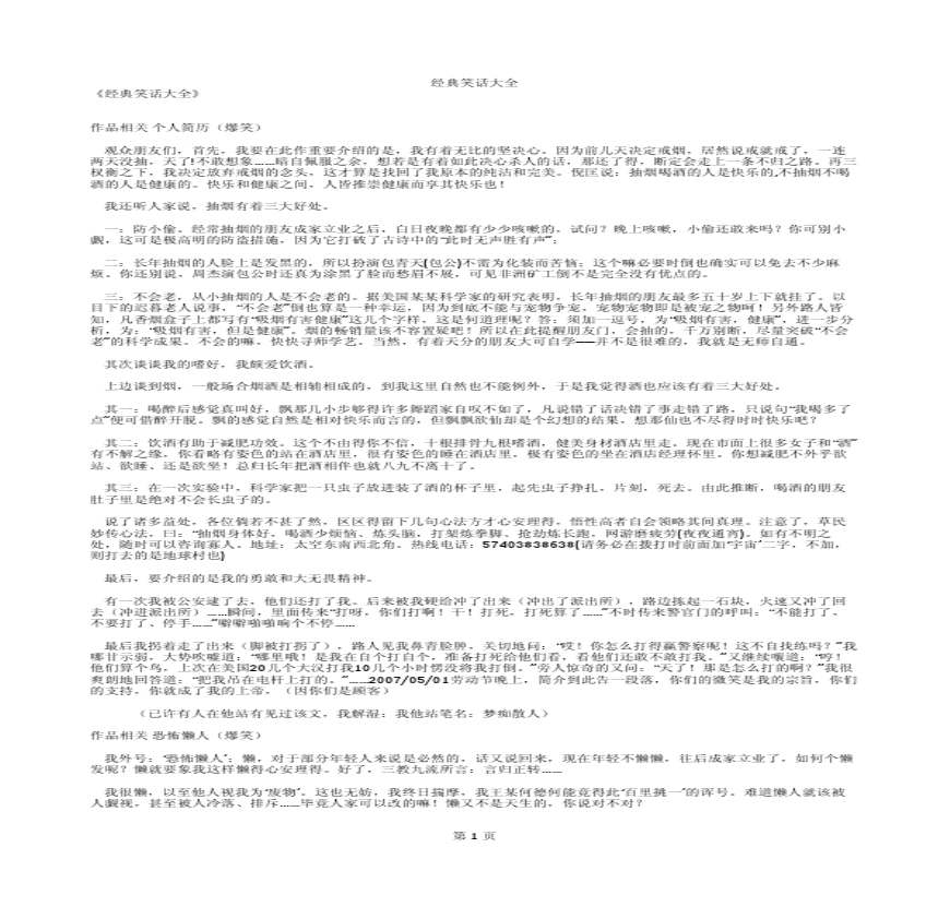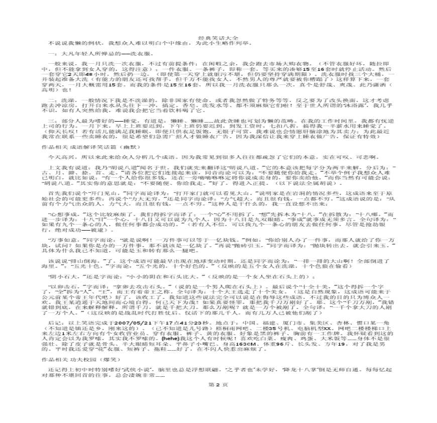 ZOL中关村在线库为您提供热门,包括冷,谐音笑话,爆笑笑话,幽默笑话,成人笑话等精选笑话,希望ZOL笑话库能给您带去轻松快乐的心情个_绿色多多文库 优质文档 个 兰等原创 下载 、 今天一早在公司上厕所,厕所门栓坏了,我就拉着厕所门,这时来了个很急的哥们,直接拉我的门,没错,我正用力呢,