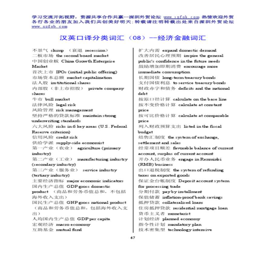 > 经济金融词汇大全