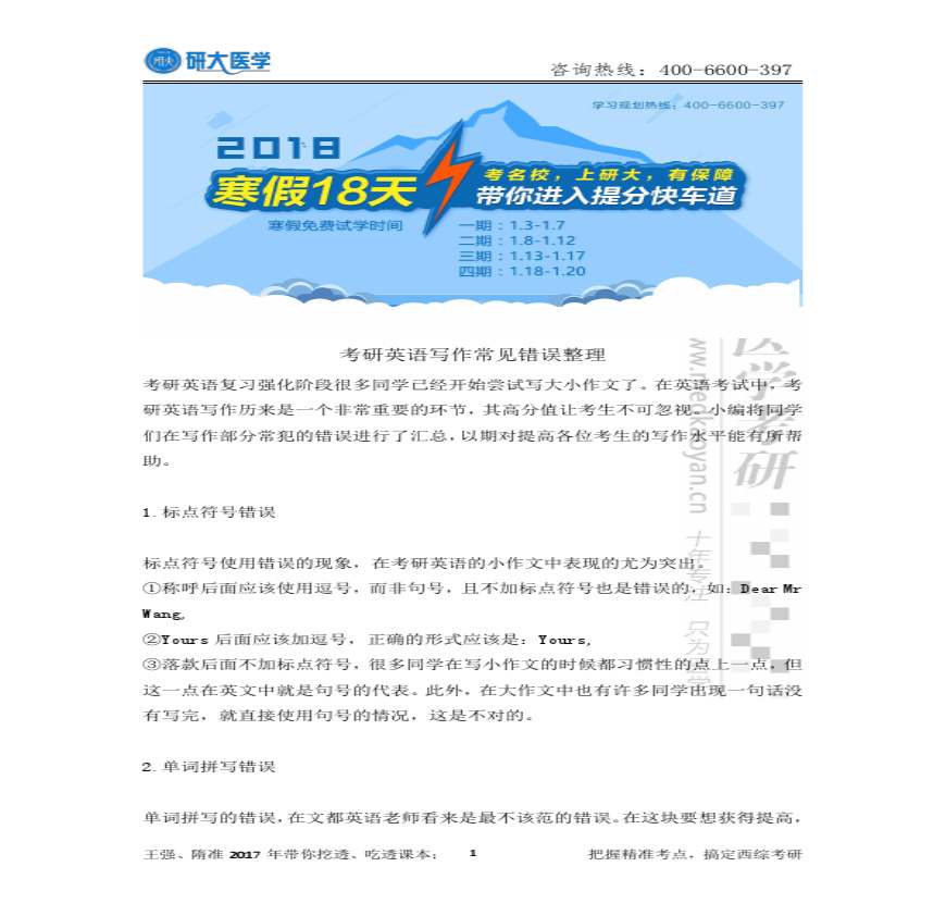 从历年考试来看,考生在写作部分大量失分的原因是考生在写作中存在一些具考研备战考研英语()年月日分析汇合中,部分是对考生综合能力的考查,主要考查学生的语言基本功和逻辑思维 首先,从词的层面来说,的问题包括:词性。