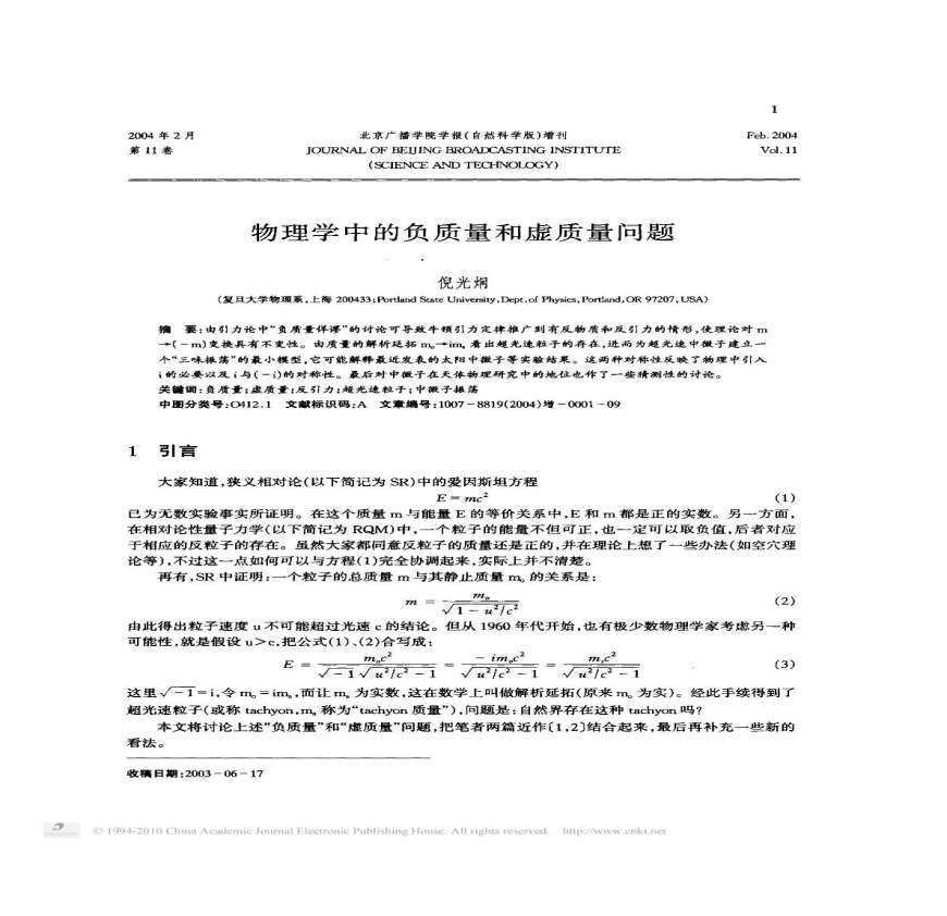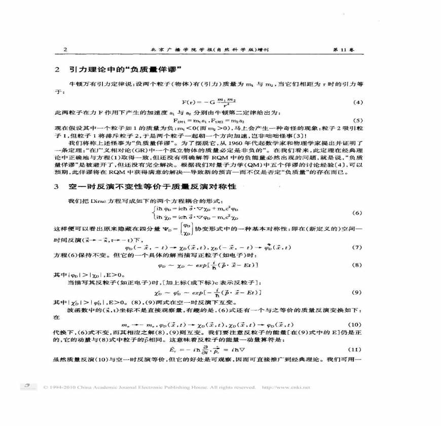 由引力论中 佯谬 的讨论可导致牛顿引力定律推广到有反物质反引力的情形,使 中引入的必要以及与(xb,倪光炯