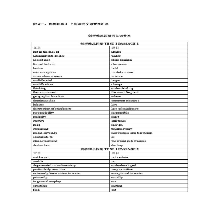 雅思雅思 VIP 分 阅读 下载 页 本文由周喜庆有许多钱贡献 附录二、雅思 —阅读同义词替换汇总 雅思四册同义词替换剑桥雅思四册 TEST学习资料页 《雅思阅读—词替换汇总》 VIP 精品文档 分 (超过%的文档) 阅读 下载 上传 页 附录二、雅思 — 阅读同义词替换汇总 学习资料页 雅思阅读—词替换 分 阅读 下载 上传 页 收藏 分享 转存 举报 APP 客户端打开 关于作者 啦啦啦啦 多多文库新人 文档学习资料页 打印版雅思阅读—词替换 打印版雅思阅读—词替换 PDF 上传日期: ::| 文 雅思浏览—词调换 雅思阅读—词替换附录二、雅思—阅读同义词替换汇总雅思四册同义词替换剑桥雅思四册TEST rr r 题目 学习资料页 附录二、雅思 — 阅读词替换汇总 雅思四册词替换 雅思四册 TEST PASSAGE 文章 题目 r r简介:本文档为《》,可适用于考试题库领域,主题内容包含附录二、剑桥雅思阅读同义词替换汇总剑桥雅思四册同义词替换剑桥雅思四册TESTPASSAGE文 学习资料页