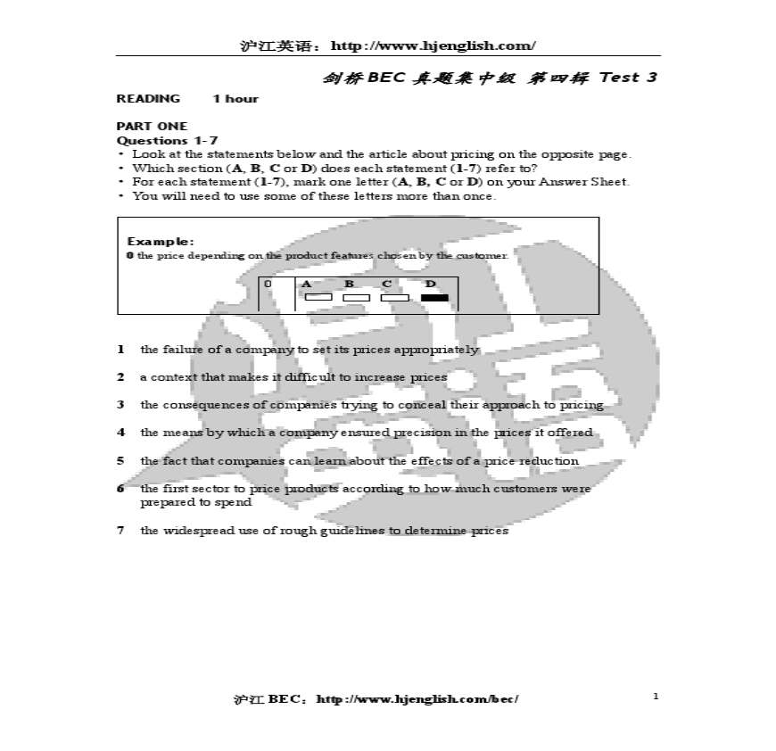 剑桥BEC真题集 第四辑 中级 Test 3资料下载,喜欢的朋友可以下载收藏!