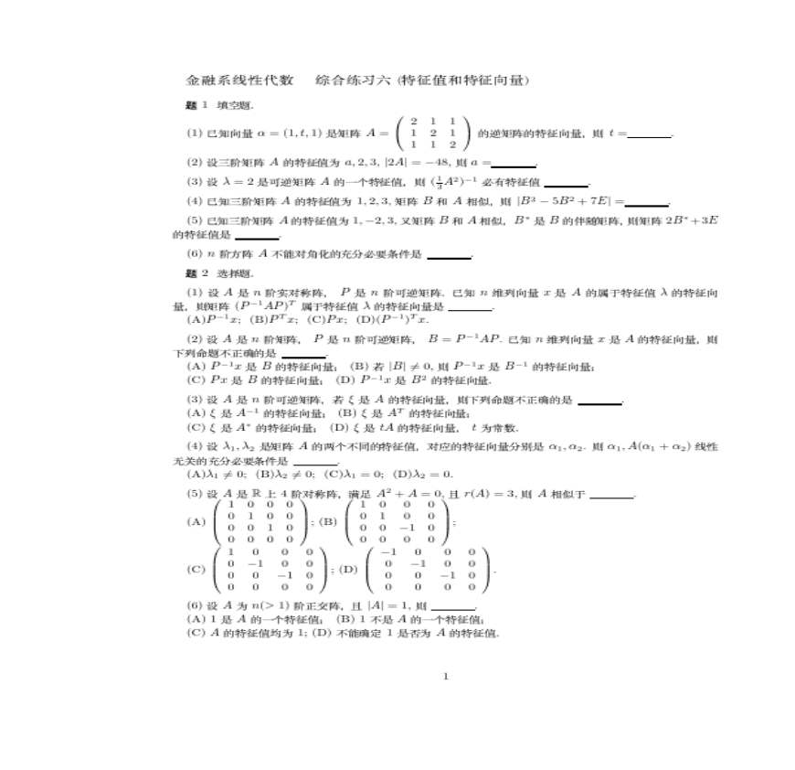 金融系线代综合练习六资料下载,喜欢的朋友可以下载收藏!