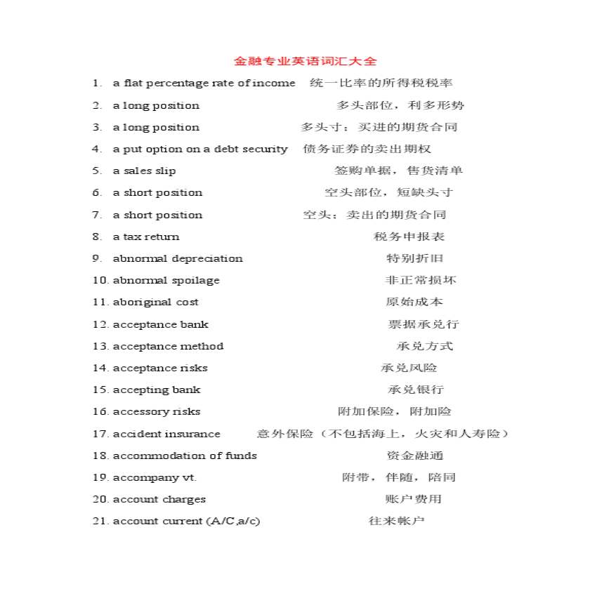 金融专业英语词汇大全资料下载,喜欢的朋友可以下载收藏!