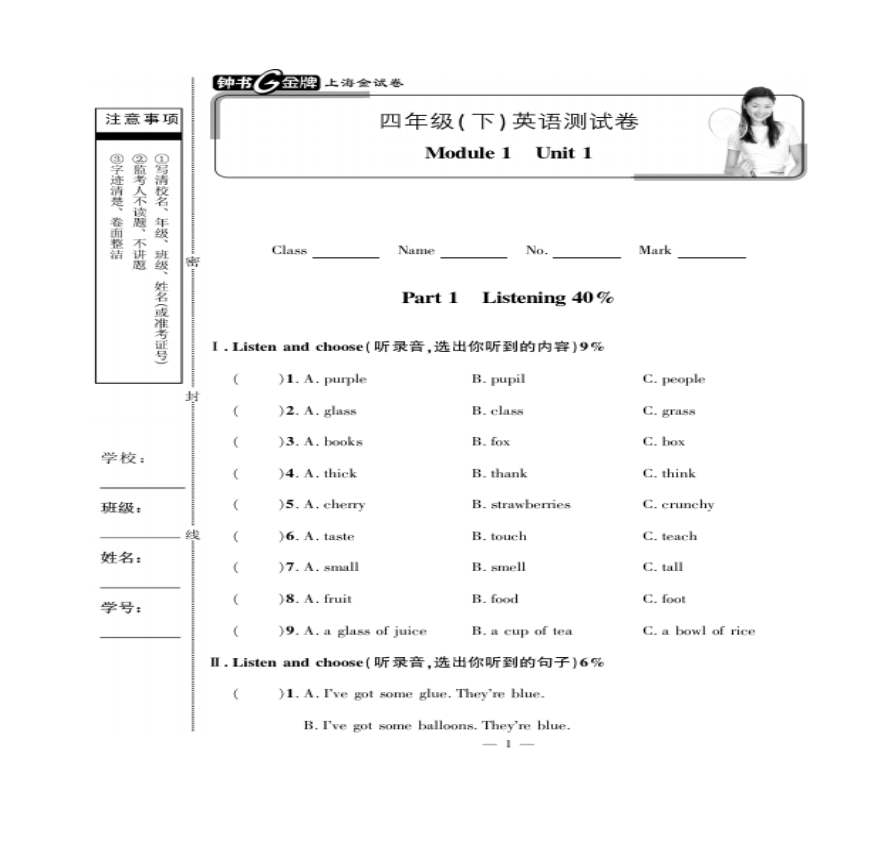 金试卷四年级英语下资料下载,喜欢的朋友可以下载收藏!