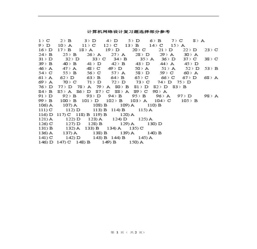 计算机网络设计复习部分选择参考资料下载,喜欢的朋友可以下载收藏!