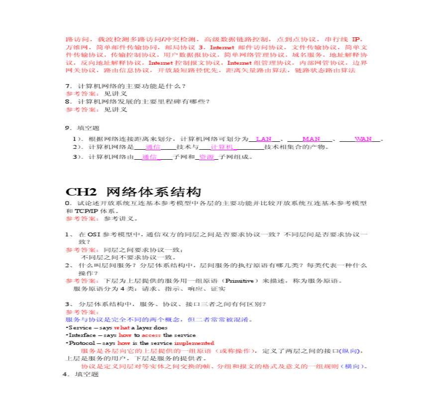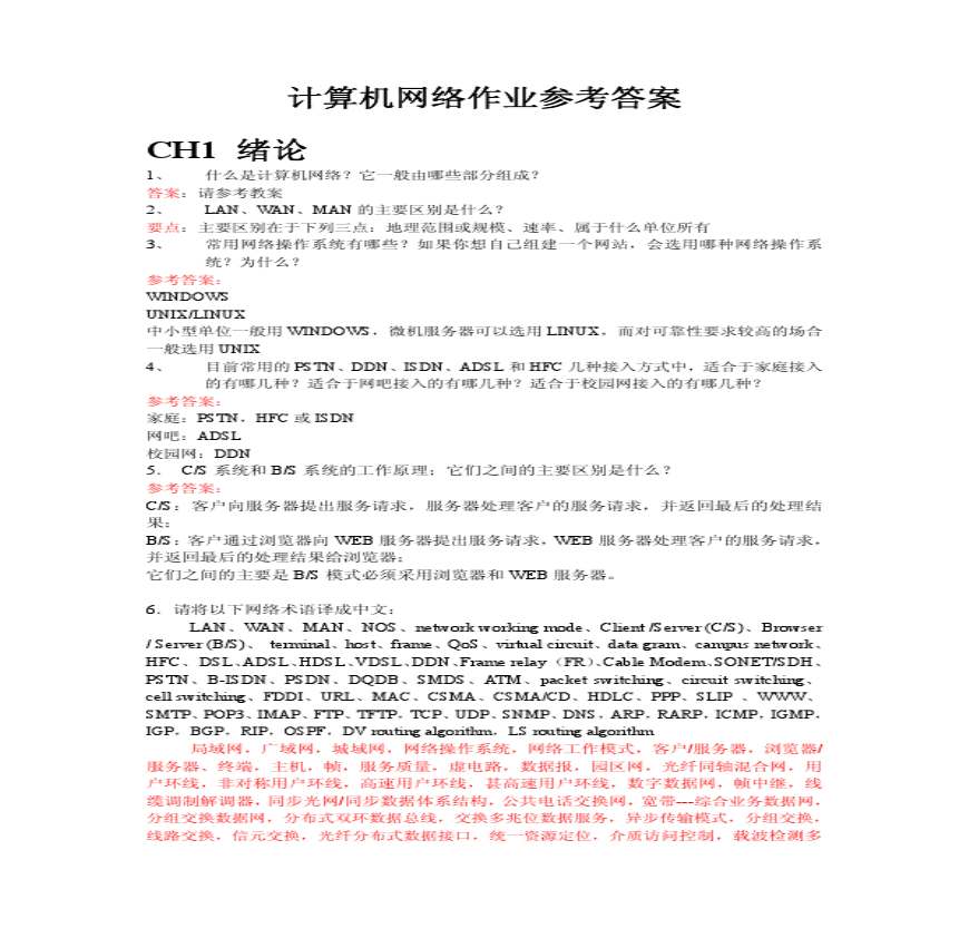 计算机网络作业参考答案资料下载,喜欢的朋友可以下载收藏!