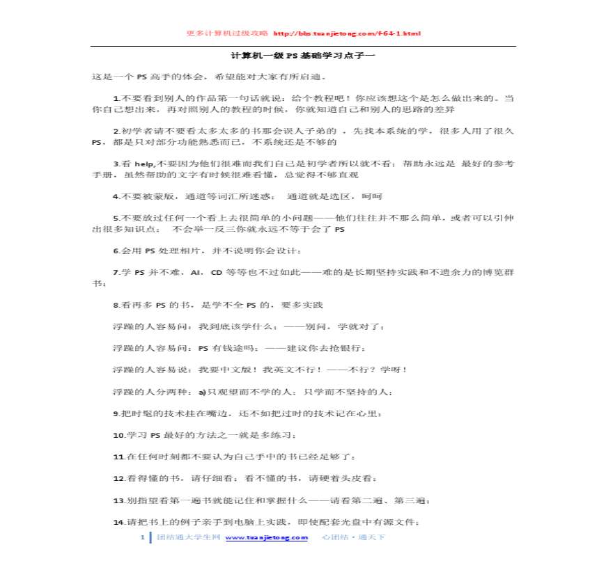 计算机一级PS基础知识学习汇总资料下载,喜欢的朋友可以下载收藏!